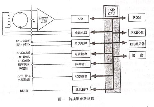 電磁流量轉換器一方面向電磁流量傳感器勵磁線圈提供穩定的勵磁電流,以達到B是一個常數,同時把傳感器感應的電動勢放大轉換成標準的電流信號或頻率信號,便于流量的顯示,控制與調節.圖二所示為轉換器電路結構。